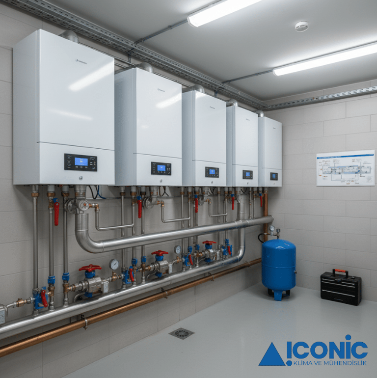 Kaskad Bağlantı: Duvar tipi kazanlar, birden fazla cihazın (genellikle 15-16 adede kadar) tek bir kontrol ünitesi üzerinden paralel bağlanabildiği Kaskad Sistemleri oluşturmaya imkan verir.